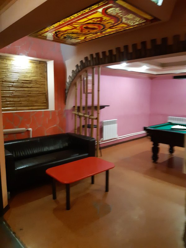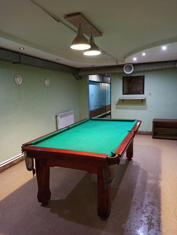 Не хочется в бассейн? Не беда! Вместо этого можно передохнуть в нашей комнате отдыха. Мы ставили своей целью создать здесь уютный, практичный интерьер из преимущественно натуральных, безопасных материалов, подобрать мебель, которая будет в равной степени удобной и красивой. Надеемся, что он придется вам по душе! Для поддержания атмосферы отдыха мы можем предложить вам бильярд и караоке.